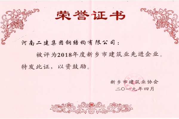 公司榮獲“2018年度新鄉(xiāng)市建筑業(yè)先進企業(yè)”