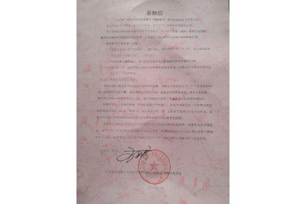北京國(guó)電德勝工程項(xiàng)目管理有限公司錫林熱 電項(xiàng)目監(jiān)理部給鋼構(gòu)公司發(fā)來表?yè)P(yáng)信