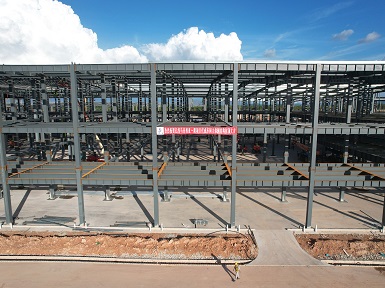 億緯馬來西亞一期項目施工總承包工程化成車間二標(biāo)段主體鋼結(jié)構(gòu)順利封頂